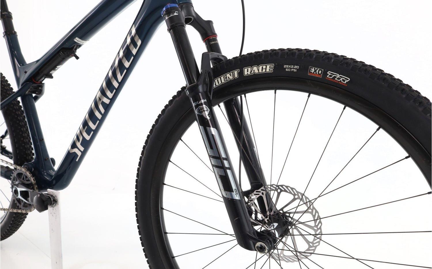 Bici usata ricondizionata · 1 anno di garanzia · Immagini reali · Finanziamento da 345 € in 12 mesi · Bicicletta Mountain Bike doppia sospensione · Telaio in Carbonio · Taglia XL: da 184 cm a 191 cm · Dimensioni della ruota: 29" · Deragliatore posteriore: · 12 Velocità velocità · Cassetta: 11-50-T · Leve del cambio: Sram GX AXS · Pedivelle: Sram X0 · Corone: 34-T · Freni: Sram Level SLV · Ruote: · Forcella: RockShox SID SL · 110mm di escursione · Ammortizzatore: RockShox Specialized Brain · Materiale della potenza: Alluminio · Manubrio: · Reggisella: Alluminio Telescopica.